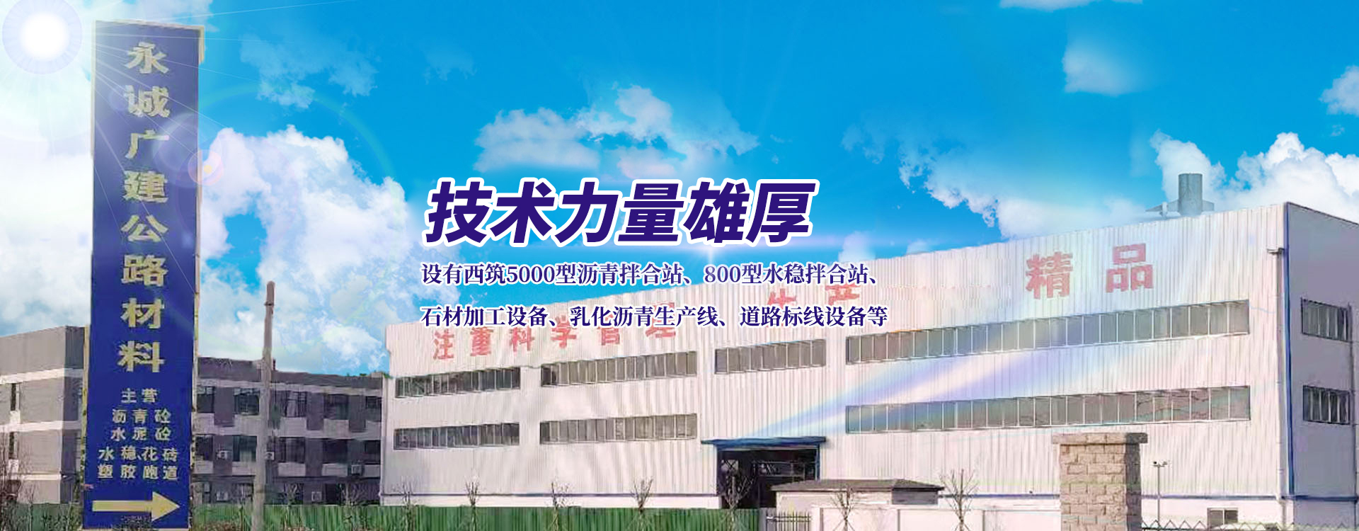 永誠廣建公路材料(山東)有限公司,坐落于商河縣賈莊鎮(zhèn)民營經濟創(chuàng)業(yè)園,設有西筑5000型瀝青拌合站、800型水穩(wěn)拌合站、石材加工設備、乳化瀝青生產線、道路標線設備等